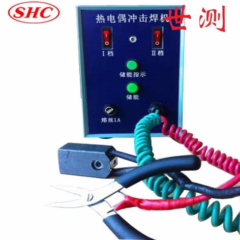 ,用手指抓住熱電偶線和焊鉗,使在焊鉗上露出的芯線垂直于石墨平面碰觸,聽到 “啪”清脆的一聲,焊接完成。再按一下儲能按鈕,為下一循環(huán)操作作好準備;