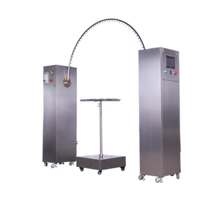 IPX4 擺管式濺水試驗(yàn)是選擇適當(dāng)半徑的擺管,使樣品臺(tái)面高度處于擺管直徑位置上,將試樣放在樣臺(tái)上,使其頂部到樣品噴水口的距離不大于200mm; 試驗(yàn)條件:水流量按擺管的噴水孔數(shù)計(jì)算,每孔為 0.07